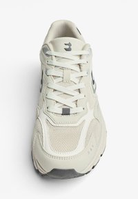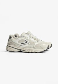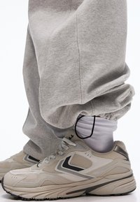 Čierne denimové džínsy s voľným strihom, rovnými nohavicami a tradičnými vreckami, doplnené svetlými teniskami a sivým tričkom.