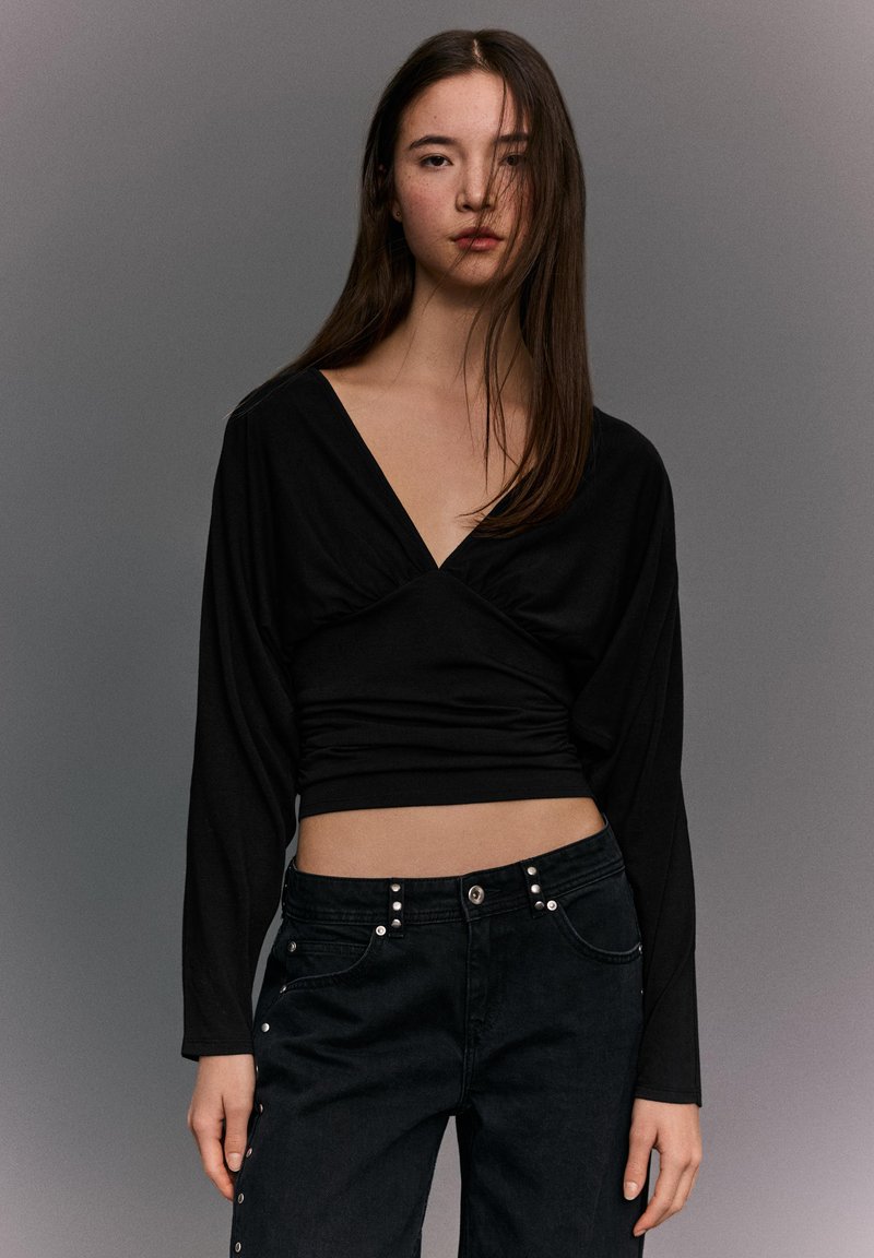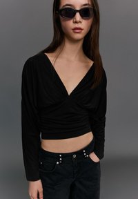 WITH GATHERED DETAIL - Top s dlhým rukávom - black