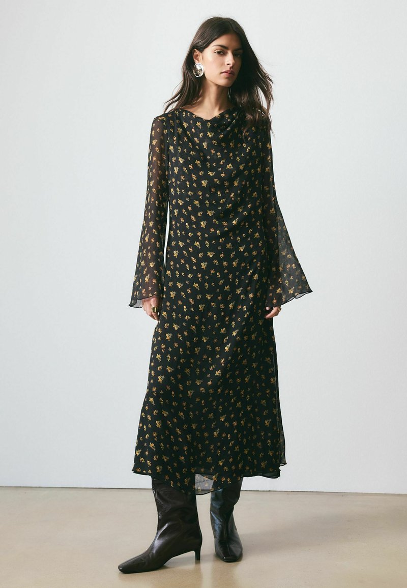REGULAR FIT - PRINTED FLOWY MIDI - Denné šaty - black