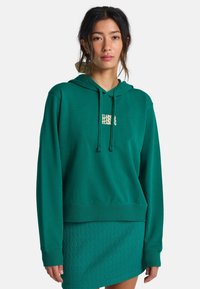 Love & RosesMikina s kapucňou - bright green bird embroidery
