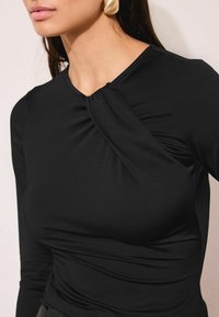 REGULAR FIT - DRAPE DETAIL - Top s dlhým rukávom - black
