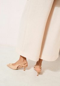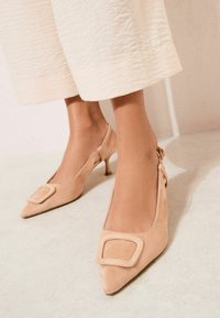 WIDE FIT - BUCKLE DETAIL SLINGBACK KITTEN HEEL SMART COURT SHOES . - Klasické lodičky na opätku - faux suede nude