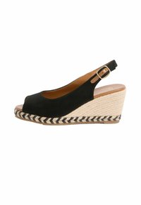 REGULAR FIT - SLINGBACK PEEP TOE ESPADRILLE WEDGE SANDALS FIT . - Topánky s otvorenou špičkou - black faux suede