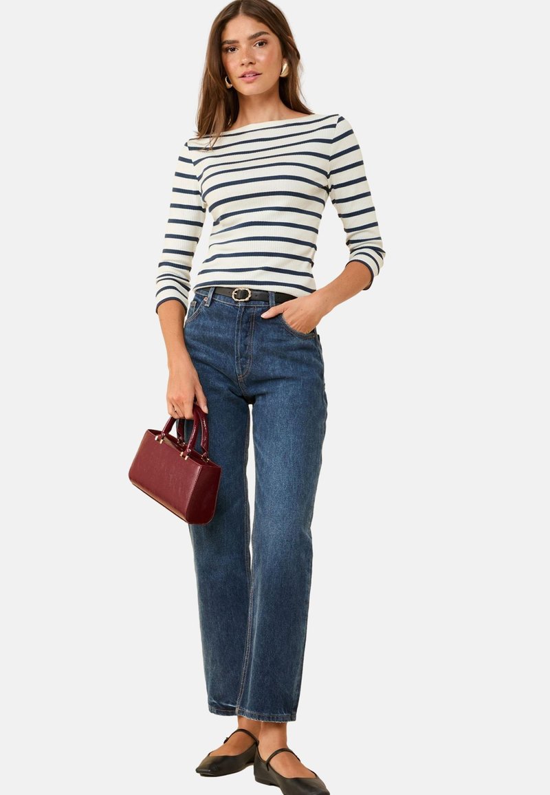 3/4 SLEEVE BOAT NECK - Top s dlhým rukávom - black white
