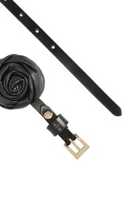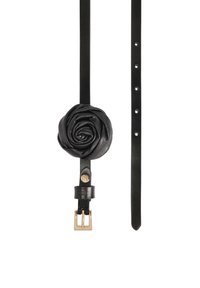 Úzky dámsky opasok z prírodnej kože v čiernej farbe je elegantným a štýlovým doplnkom, ktorý dodá triedu každému stylingu. Opasok sa vyznačuje minimalistickým dizajnom a jeho malá štvorcová pracka v zlatej farbe pridáva jemnú eleganciu a moderný vzhľad. Ozdobený koženým kvetom získava opasok jedinečný, romantický dotyk, ktorý upúta pozornosť a odlišuje ho od iných doplnkov. Kvet bol vyrobený ručne, čo mu dodáva jedinečnosť a originalitu. Tento úzky opasok s kvetom bude dokonalým prvkom stylingu pre každodenné i špeciálne príležitosti. Možno ho nosiť okolo pása, aby zdôraznil ženské krivky a pridal elegantný záverečný dotyk k šatám alebo blúzke. 3D ruža bude výrazným detailom, ktorý oživí jednoduchý outfit a dodá mu jedinečný charakter. Opasok bude tiež skvelým doplnkom ku klasickým nohaviciam alebo sukni, pridá im nádych sofistikovanosti a romantiky.