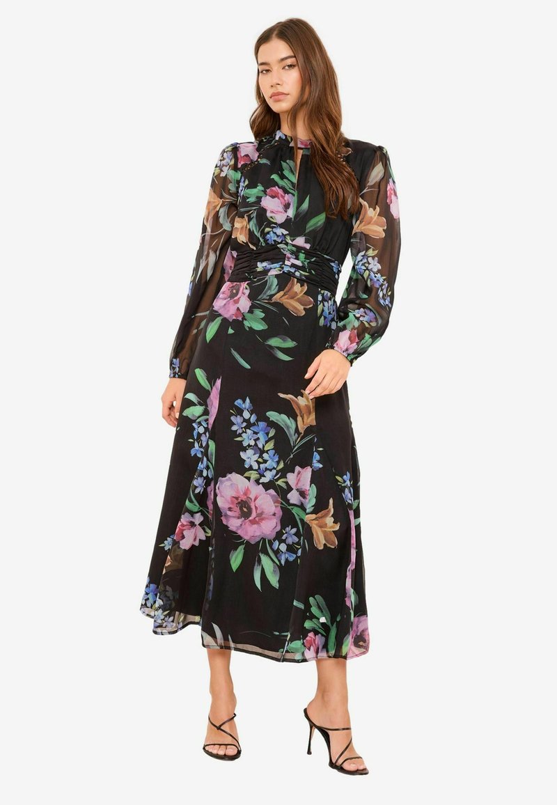 REGULAR FIT - LONG SLEEVE FLORAL - Maxi šaty - black