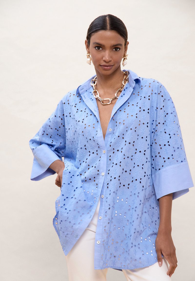 Blúzka so zapínaním na gombíky - sky blue