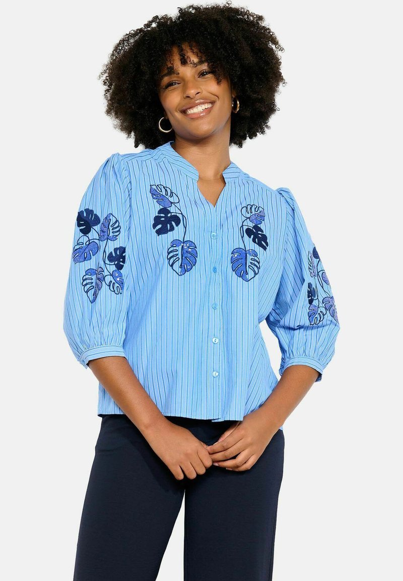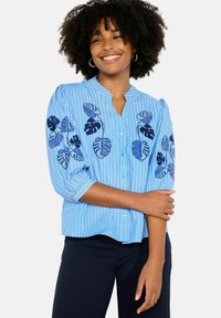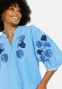 EMBROIDERED STRIPED - Blúzka so zapínaním na gombíky - blue pastel