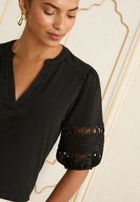 REGULAR FIT V-NECK - Tričko s potlačou - black heart lace insert