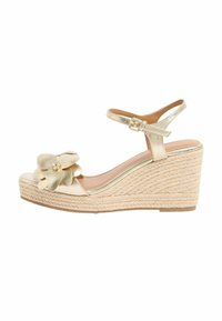 REGULAR FIT - FLORAL CORSAGE 2 PART MID HEEL SUMMER WEDGES . - Espandrilky - red faux suede