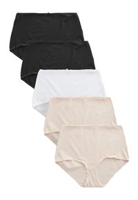 Päť párov vysokých nohavičiek v rôznych odtieňoch ružovej, biele s ružovými bodkami a tmavobordovej; vyrobené z mäkkého materiálu.
