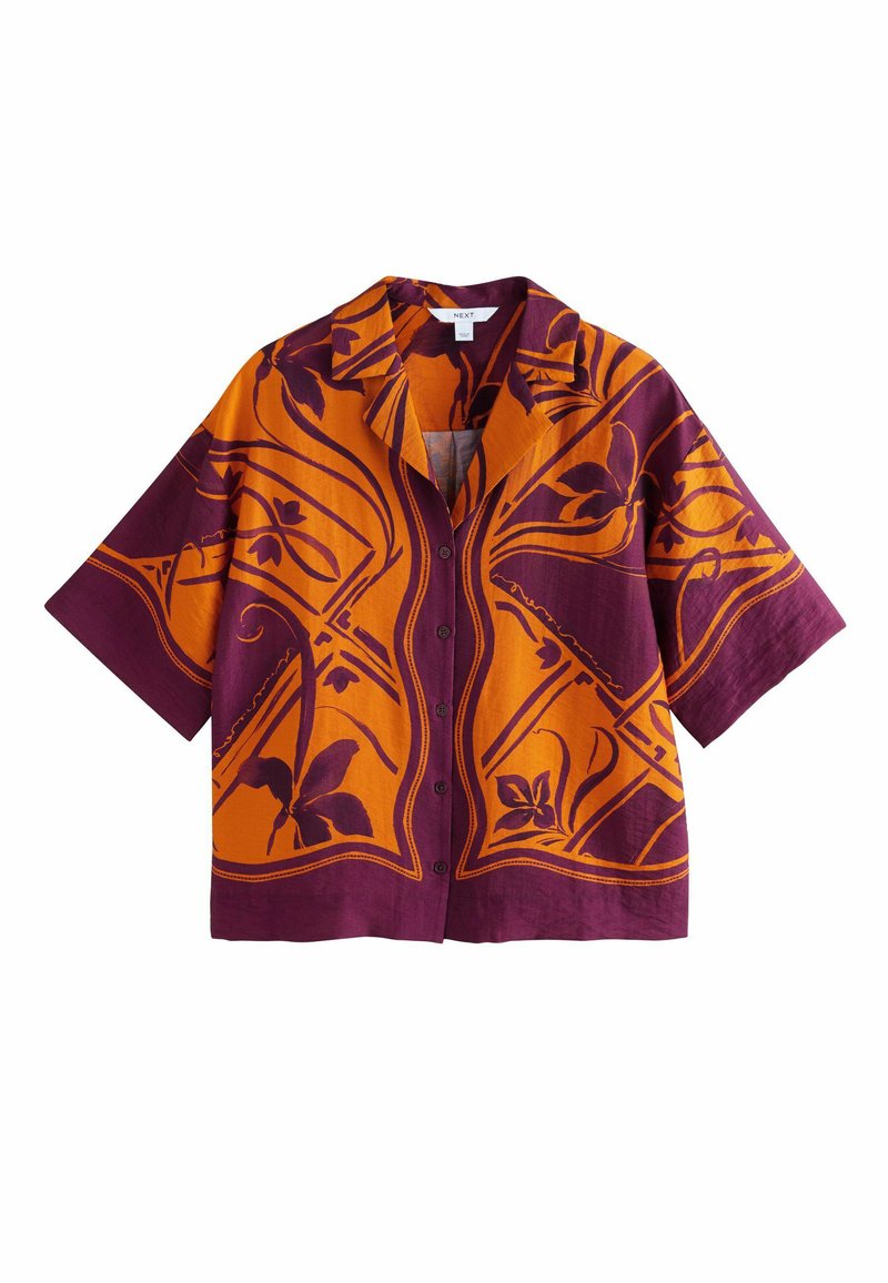 REGULAR FIT - SHORT SLEEVE RESORT - Blúzka so zapínaním na gombíky - orange burgundy border print
