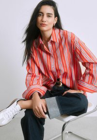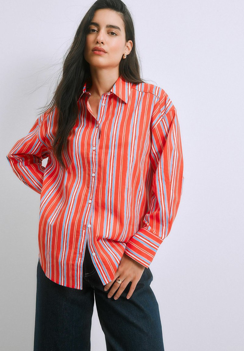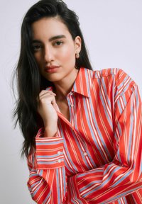 REGULAR FIT - OVERSIZED BOYFRIEND LONG SLEEVE SHIRT . - Blúzka so zapínaním na gombíky - red multi stripe