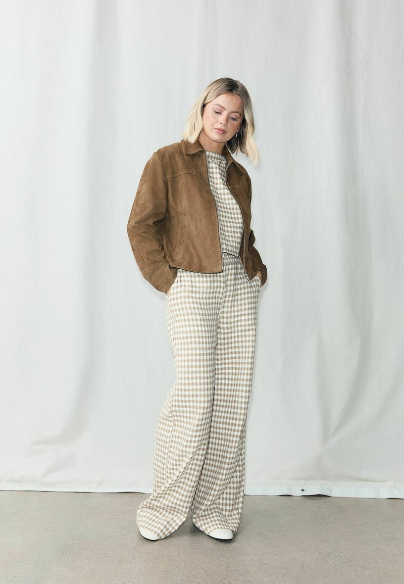 BUTTON SHELL - Top - brown ecru gingham