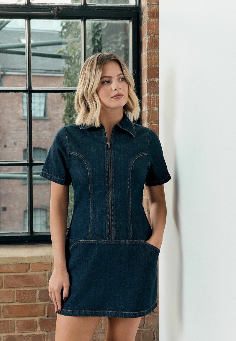 REGULAR FIT - ZIP THROUGH MINI - Denimové šaty - dark blue