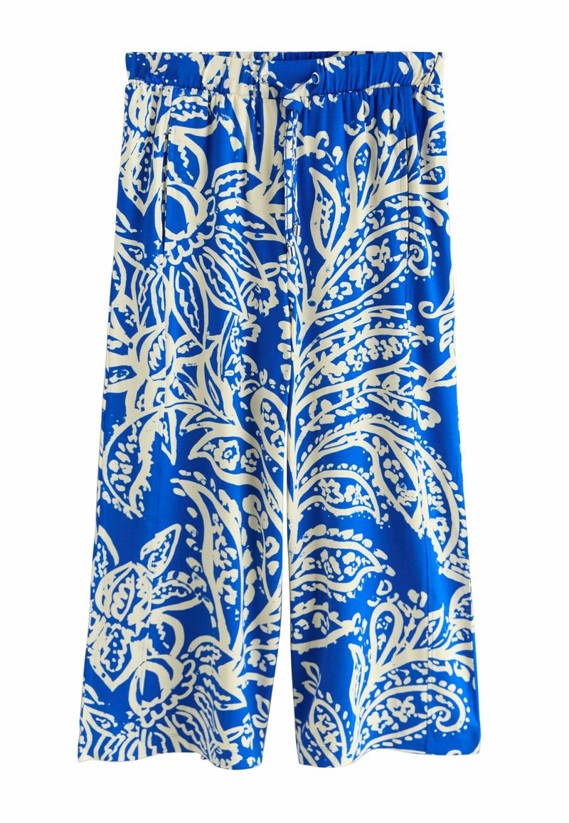 CULOTTES - Nohavice - blue ecru leaf print