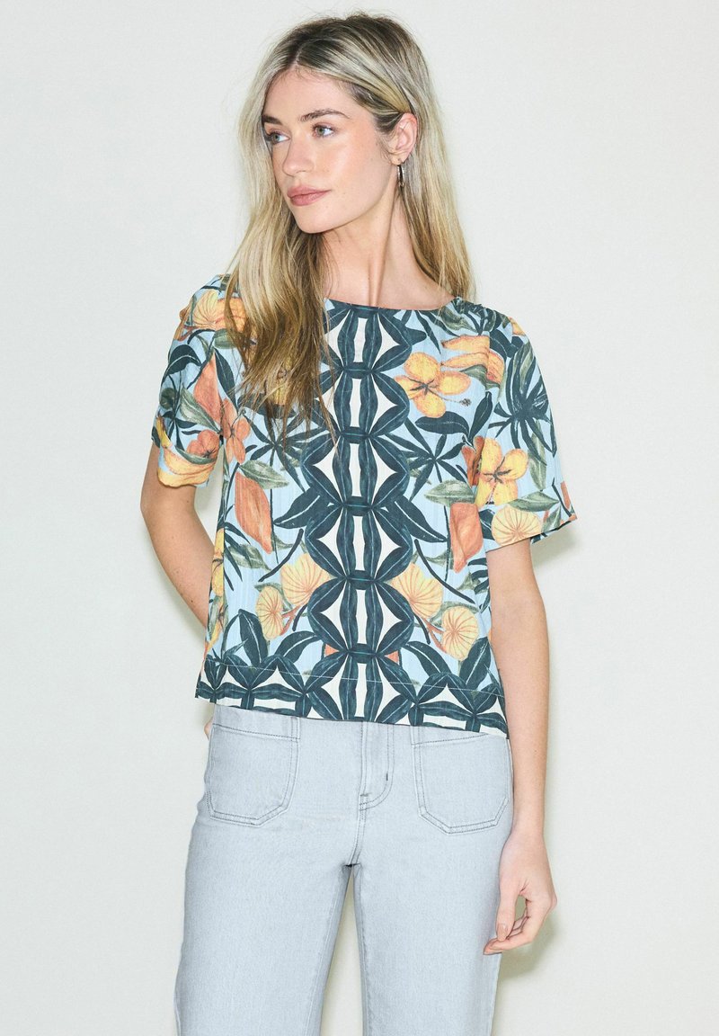 REGULAR FIT - SHORT SLEEVE BOXY - Blúzka - navy floral border print
