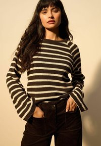 CREW NECK - Svetrík - chocolate brown ecru stripe