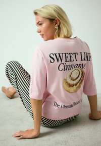 RELAXED BOXY ELBOW LENGTH CREW NECK - Základné tričko - pink cinnamon roll graphic