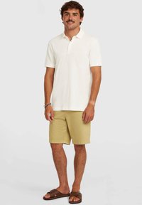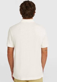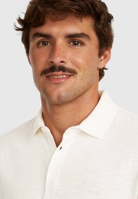 Polo tričko s krátkym rukávom v svetlo krémovej farbe, vyrobené z textúrovaného materiálu. Má klasický golier a dvojgombíkovú légu. Jemný detail s logom.