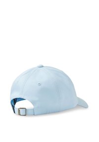 Svetlomodrá šiltovka s zaobleným štítkom a kovovou emblémovou známkou na prednej strane. Hladký materiál s neformálnym dizajnom.