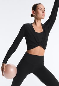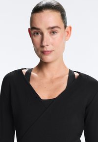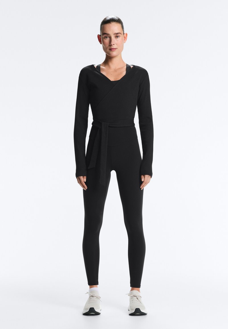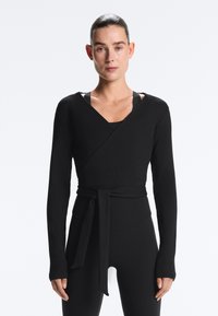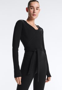 RIB COTTON WRAP - Top s dlhým rukávom - black