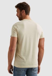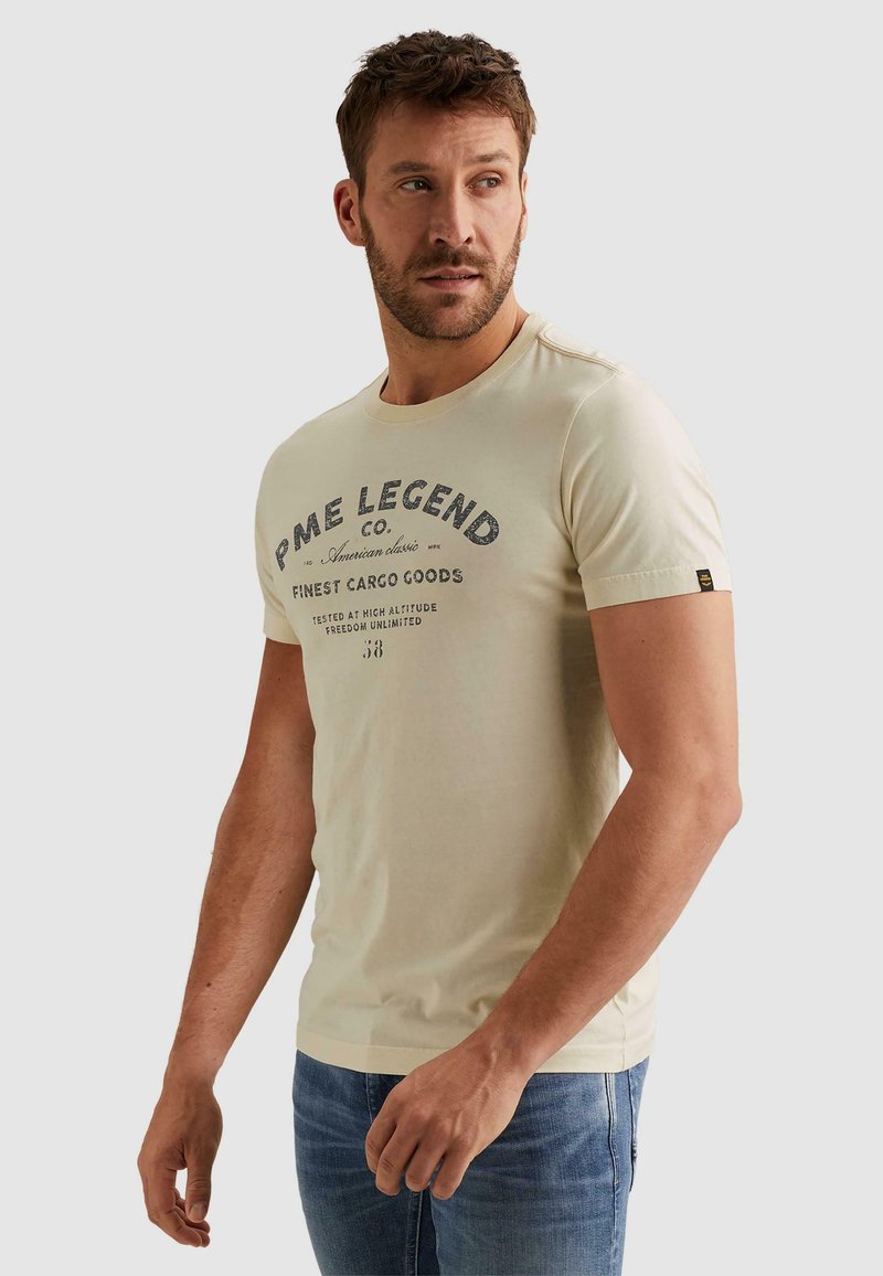 Muž s krátkymi hnedými vlasmi, oblečený v béžovom tričku PME Legend s potlačou a modrých džínsoch, pozerajúci sa mierne doprava.