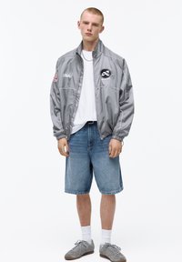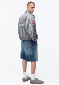 BershkaEMBROIDERED - Denimová bunda - light-blue denim