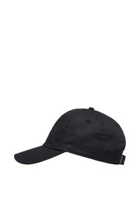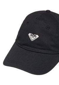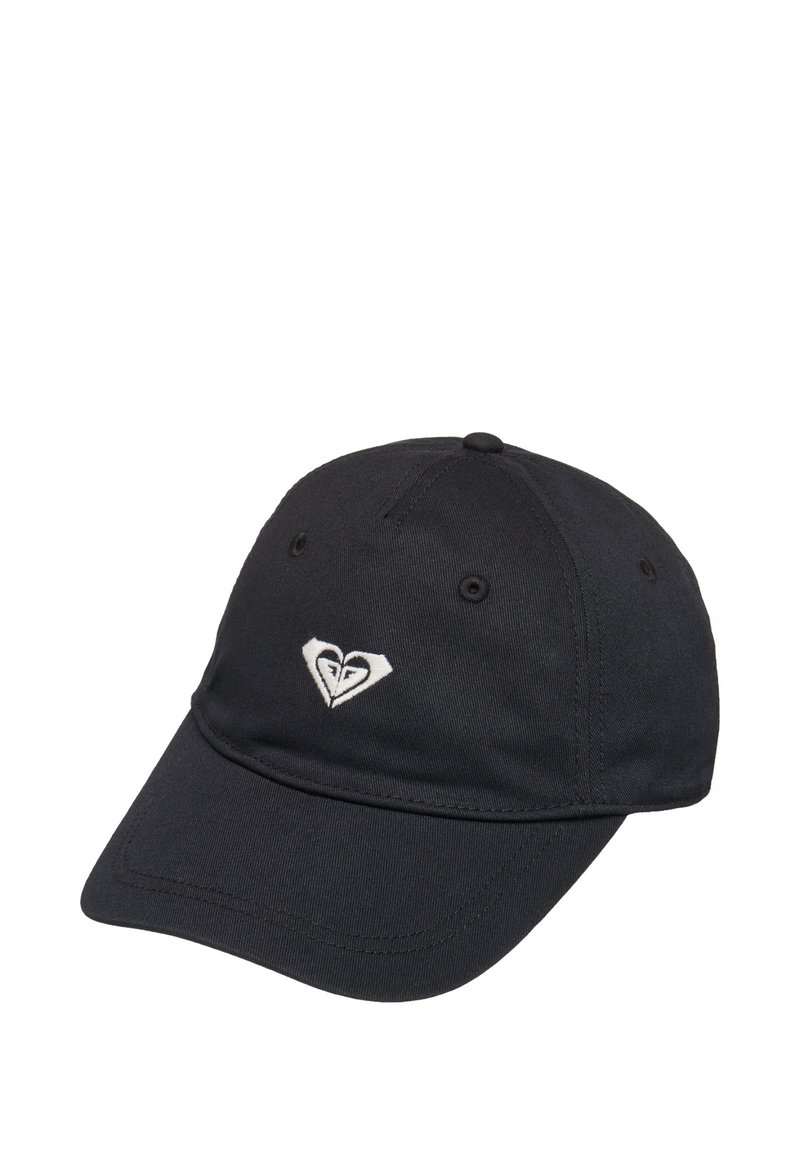 Čierna šiltovka s oblým šiltom a bielym logom v tvare srdca so štýlizovanou tvárou v strede prednej časti.