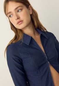 FITTED DOUBLE ZIP - Denimová bunda - used denim