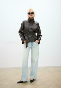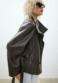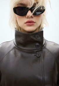 HIGH NECK - Bunda z nepravej kože - dark brown