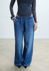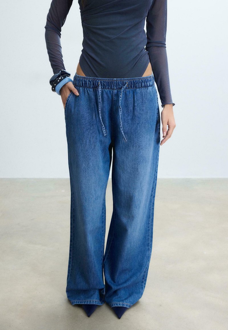 FLOWY WITH DRAWSTRING - Džínsy voľného strihu - mottled dark blue