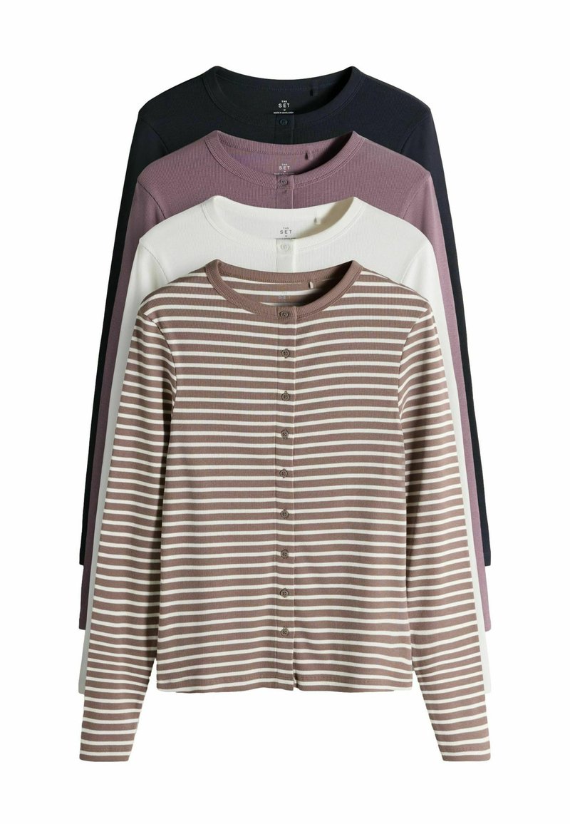 REGULAR FIT 4 PACK LONG SLEEVE BUTTON THROUGH - Kardigán - navy pink white stripe