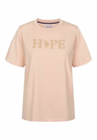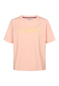 Námornícky modré bavlnené tričko s krátkymi rukávmi, ktoré je zdobené nápisom "HOPE" zlatými písmenami a logom. Priamy strih s okrúhlym výstrihom.
