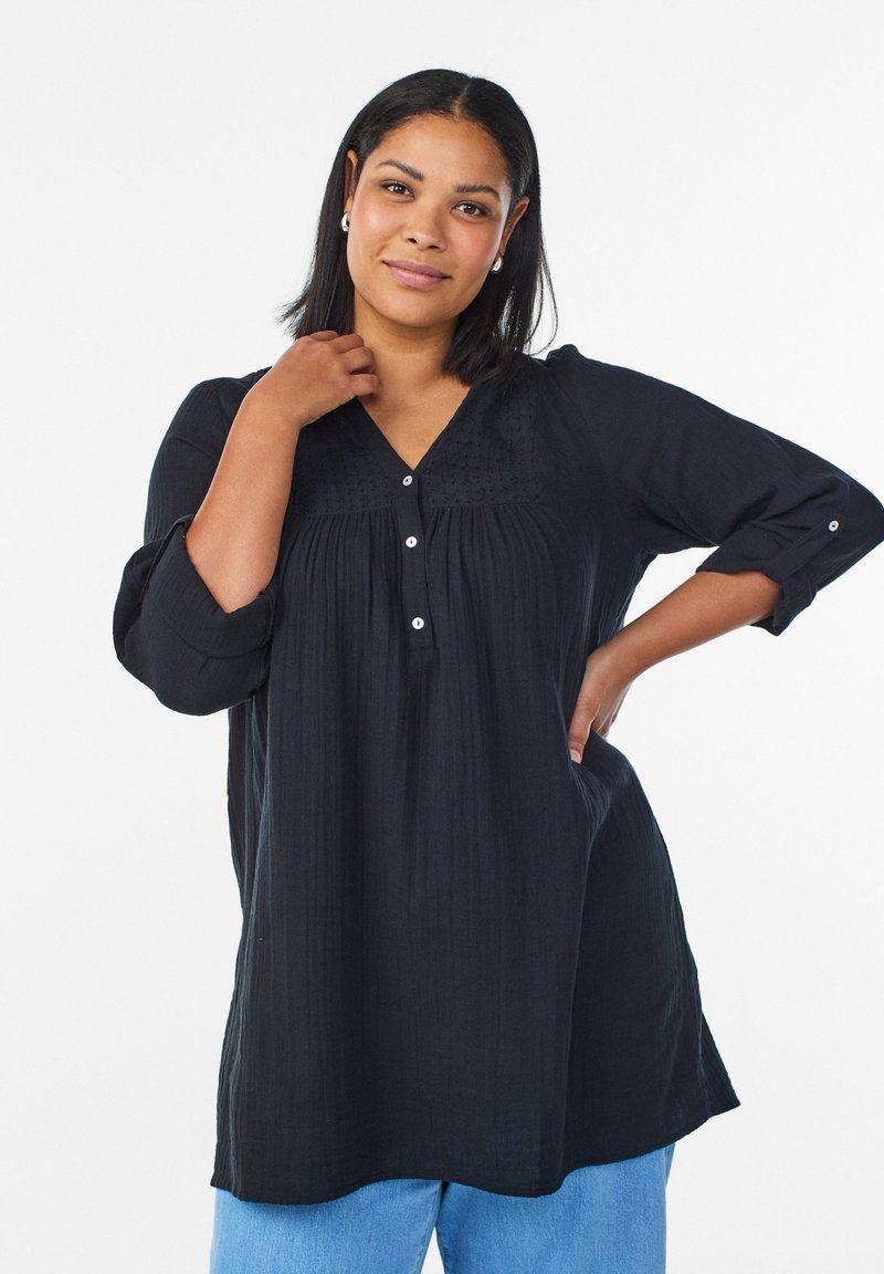 MIT BRODERIE ANGLAISE - Tunika - black